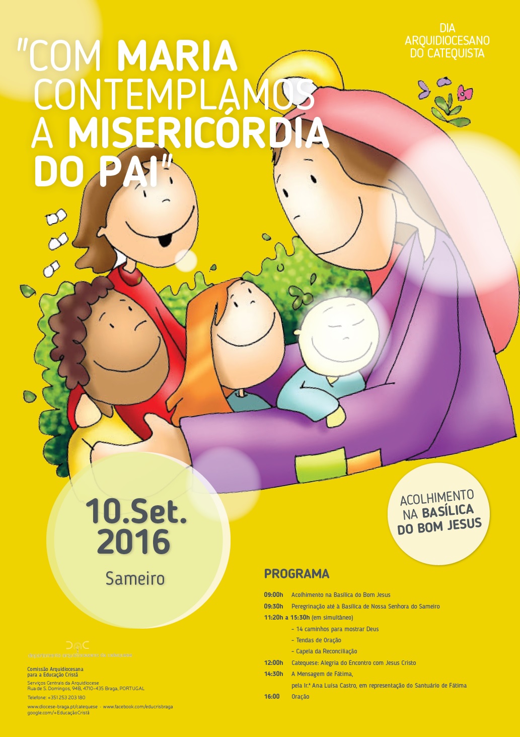 No próximo dia 10 de Setembro, sábado, realiza-se o Dia Arquidiocesano do Catequista, em Braga, no Santuário de Nossa Senhora do Sameiro. Esta iniciativa, promovida pelo Departamento Arquidiocesano da Catequese, tem lugar, à semelhança dos anos anteriores, no 2º sábado de Setembro, numa altura em que se aproxima a abertura de mais um ano catequético em todas paróquias, congregando milhares de catequistas provenientes de toda a Arquidiocese de Braga.