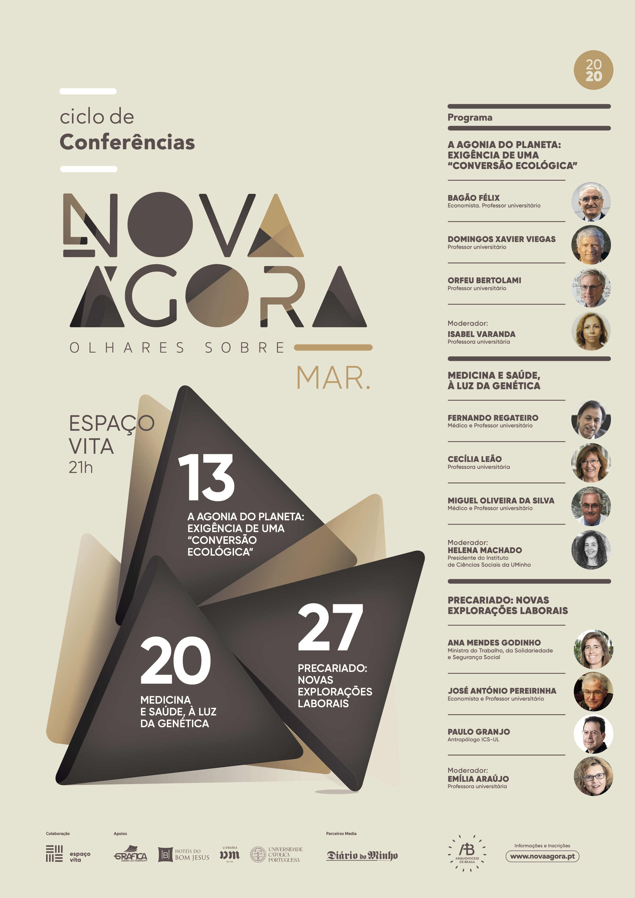 Todas as conferências decorrem no Espaço Vita, pelas 21h00, e a entrada é gratuita, mas está sujeita a inscrição em www.novaagora.pt.