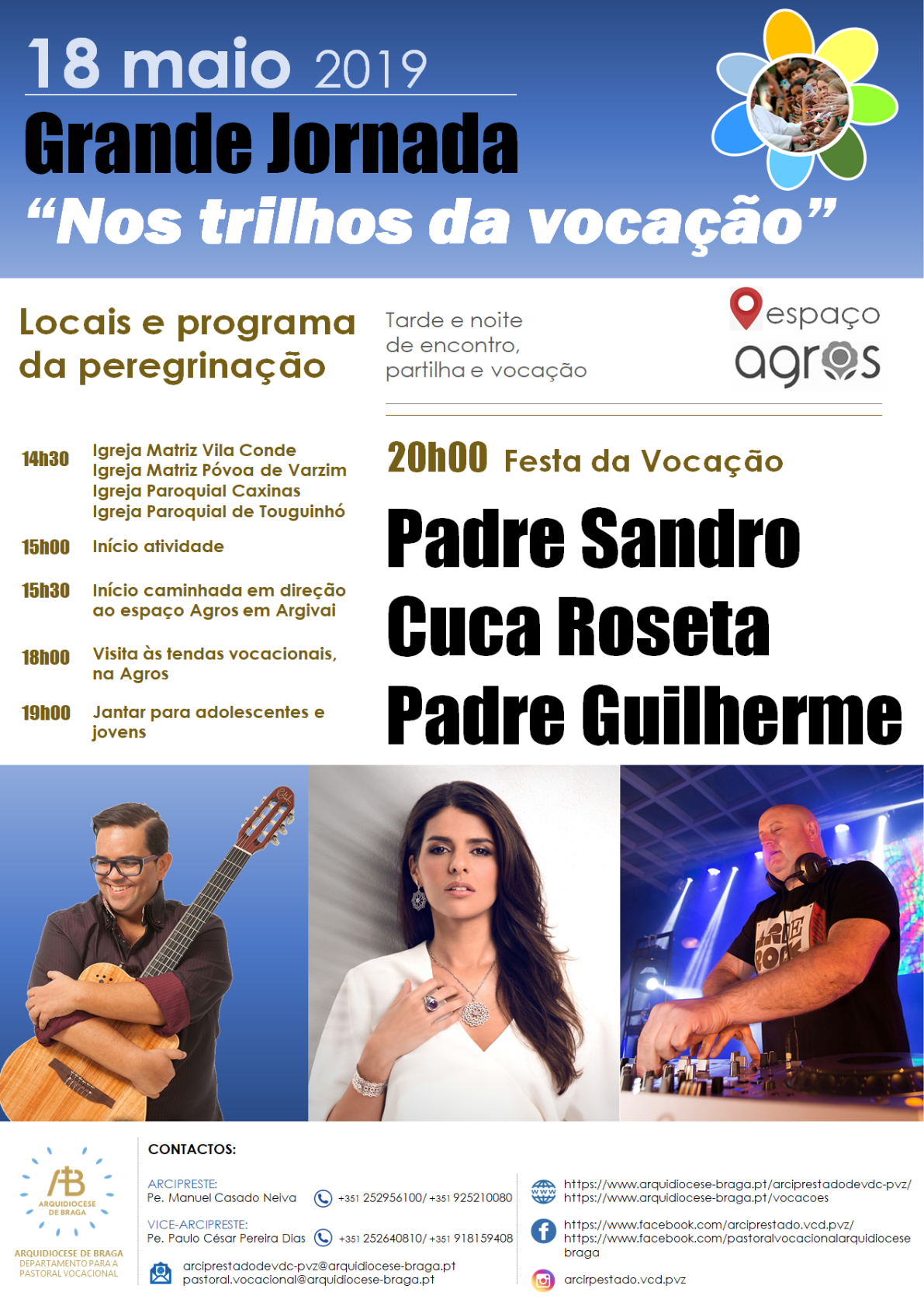 A Semana das Vocações na Arquidiocese de Braga, celebrada este ano no Arciprestado de Vila do Conde/Póvoa de Varzim apresenta uma Peregrinação Vocacional e concerto com o padre Sandro Vasconcelos, a fadista Cuca Roseta e o Padre Guilherme no dia 18 de Mai