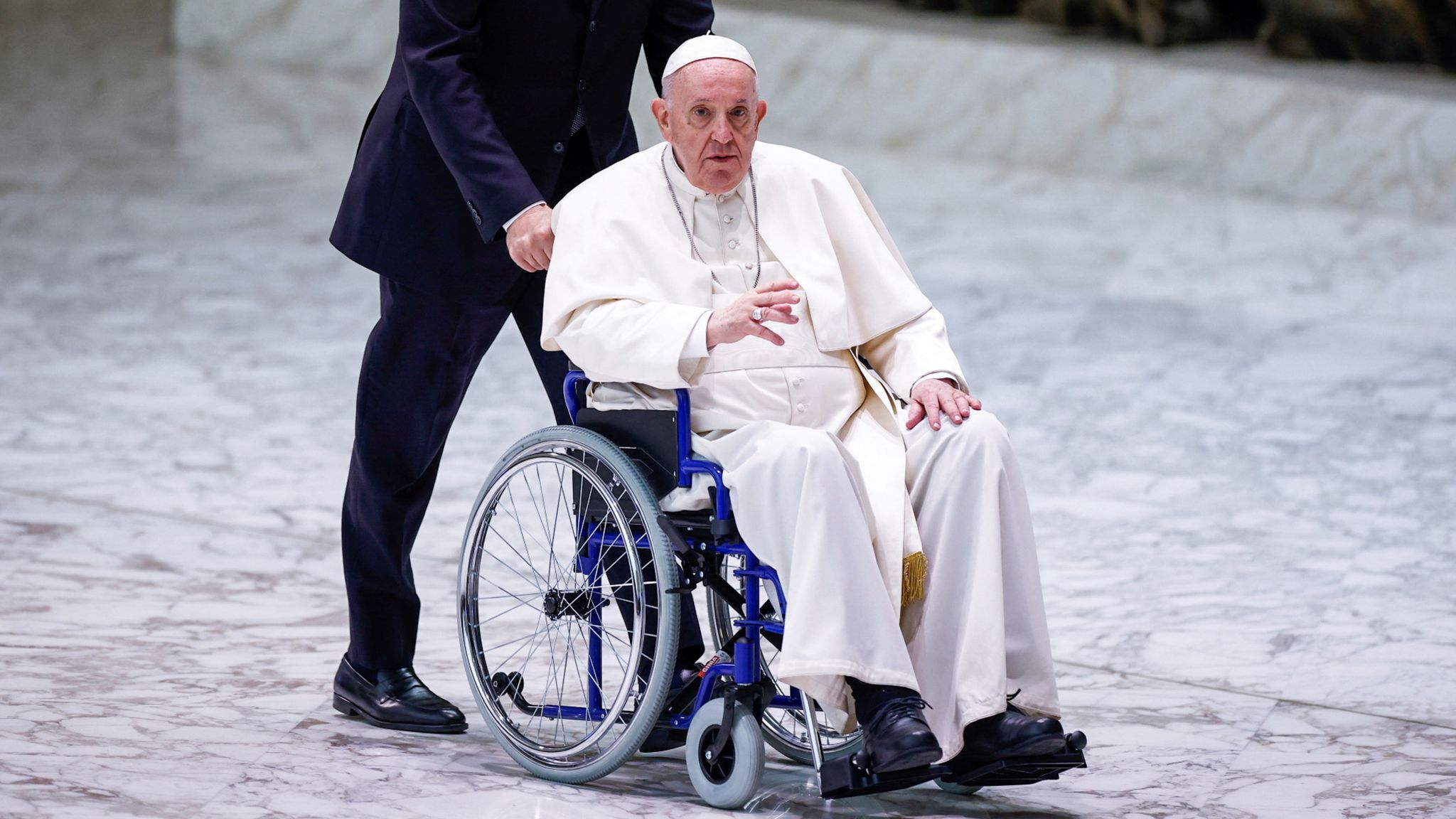 O Papa Francisco que está a ter de acalmar pela idade e pelas doenças, mas não tem medo de usar uma cadeira de rodas, como qualquer pessoa normal na sua condição faria.