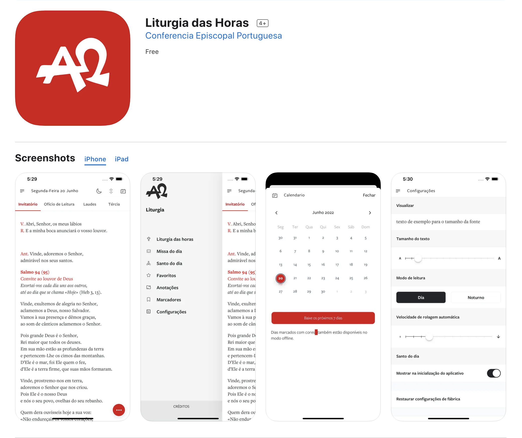 A aplicação conta com o texto oficial da Liturgia das Horas e do Missal Romano da Conferência Episcopal Portuguesa.