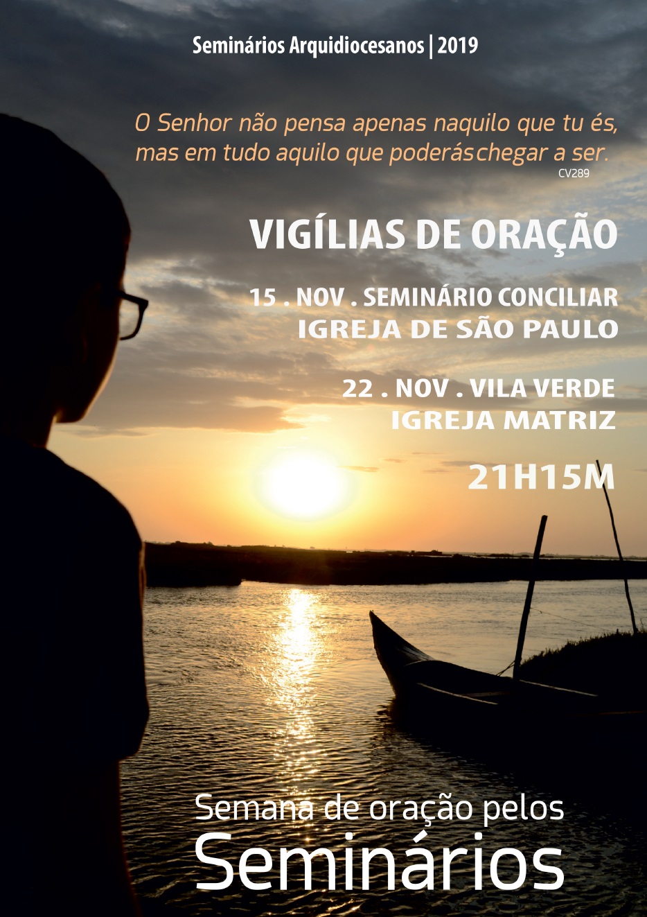 13 novembro 2019 Notícia A. Seminários organizam vigílias de oração pelos seminários Vigílias têm lugar em Braga na Sexta, dia 15, e em Vila Verde na Sexta, dia 22 de Novembro.