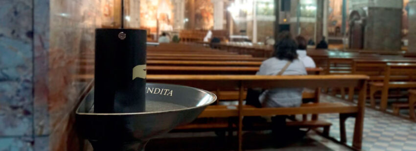Paroquianos têm possibilidade de participarem na recuperação do sacramental graças aos dispensadores anti-Covid.
