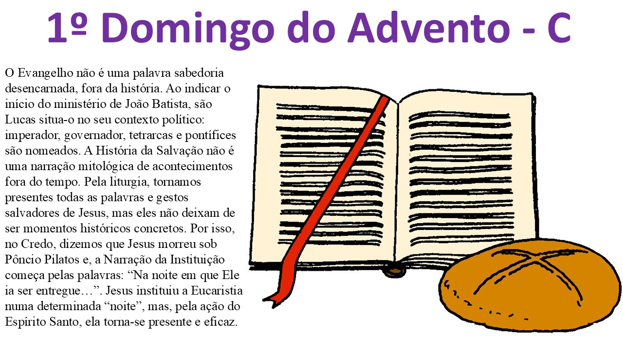 O Evangelho não é uma palavra de sabedoria desencarnada, fora da história. Ao indicar o início do ministério de João Batista, são Lucas situa-o no seu contexto político: imperador, governador, tetrarcas e pontífices são nomeados. A História da Salvação não é uma narração mitológica de acontecimentos fora do tempo. Pela Liturgia, tornamos presentes todas as palavras e gestos salvadores de Jesus, mas eles não deixam de ser momentos históricos concretos. Por isso, no Credo, dizemos que Jesus morreu sob Pôncio Pilatos e a Narração da Instituição começa pelas palavras: “na noite em que Ele ia ser entregue…”. Jesus instituiu a Eucaristia numa determinada “noite”, mas, pela ação do Espírito Santo, ela torna-se presente e eficaz.