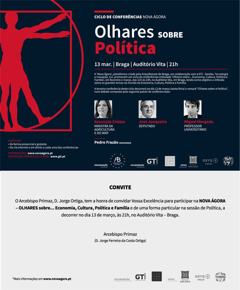 Neste debate, todos os olhares estão voltados para a política. Assunção Cristas, Ministra da Agricultura e do Mar, José Junqueiro, deputado, e Miguel Morgado, professor universitário, compõem o painel que irá discutir algumas das problemáticas actuais relacionadas com a política. O debate conta ainda com a presença de Pedro Frazão como moderador.