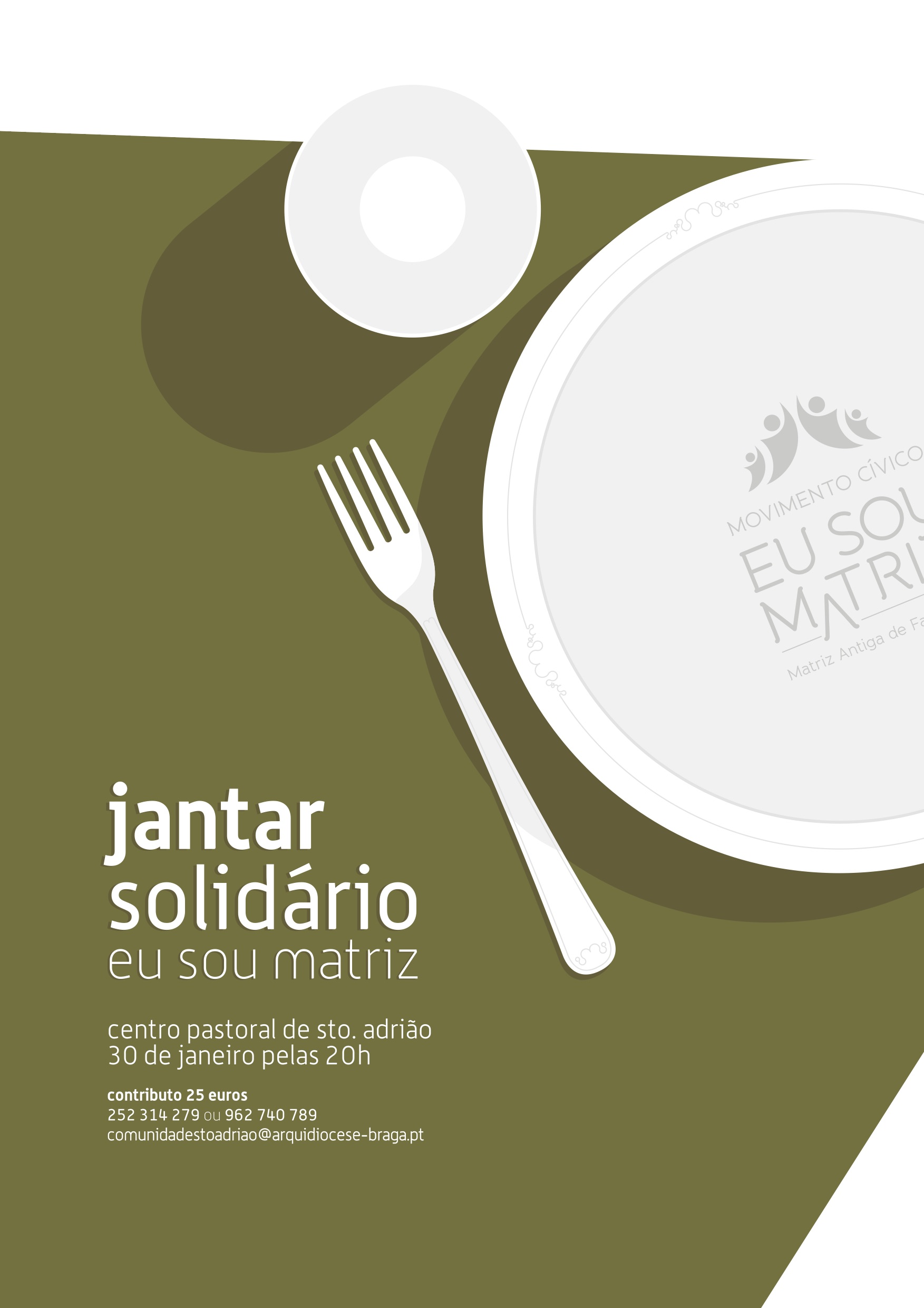 O Movimento Eu Sou Matriz organiza o segundo jantar solidário, agendado para as 20h do dia 30 de Janeiro, no Salão Nobre do Centro Pastoral da Paróquia doe Santo Adrião — Vila Nova de Famalicão.