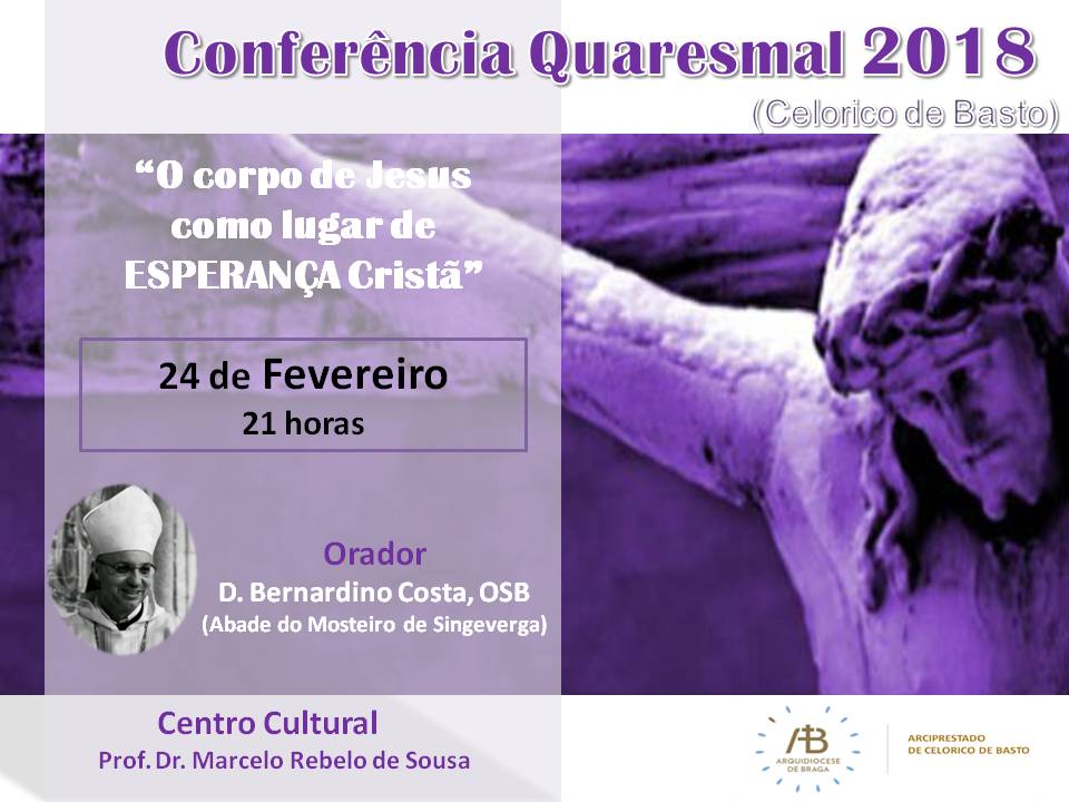 A conferência deste ano é subordinada ao tema "O corpo de Jesus como lugar de Esperança cristã" e conta com a presença de Bernardino Costa, OSB, Abade do Mosteiro Beneditino de Singeverga.