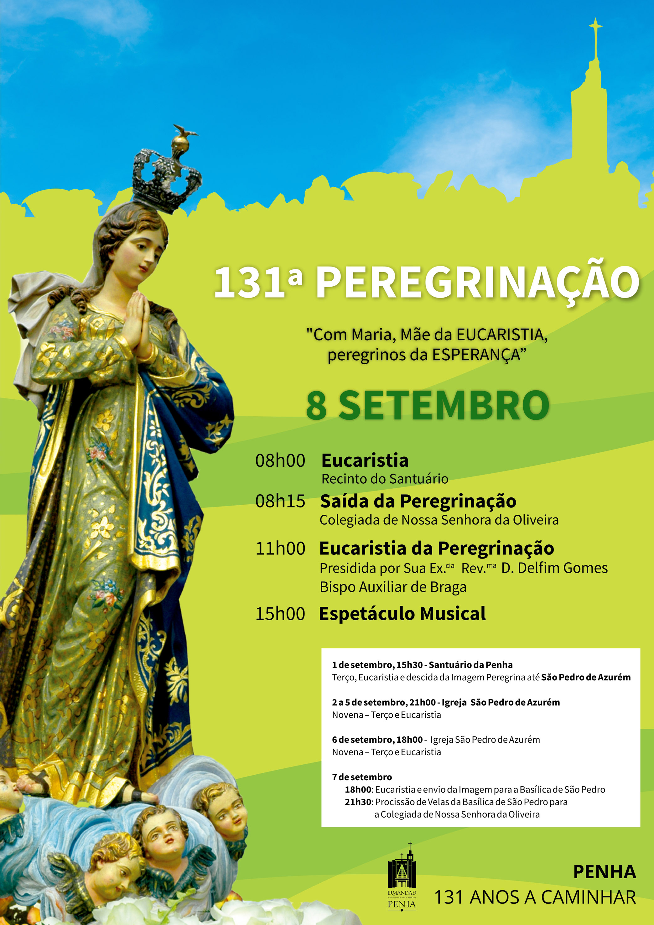No decurso da semana, de 2 a 6 de setembro, as novenas de preparação, seguidas de eucaristia, serão na Igreja de São Pedro de Azurém às 21h, com exceção de sexta-feira que será às 18h.
