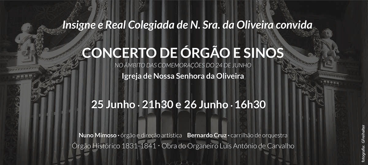 No âmbito das comemorações do feriado municipal de 24 de Junho, o Dr. Nuno Mimoso propõe um concerto didático que dá a conhecer à comunidade o património instrumental organístico e sineiro da antiga Insigne e Real Colegiada de Nossa Senhora da Oliveira. O programa será preenchido exclusivamente por obras portuguesas.