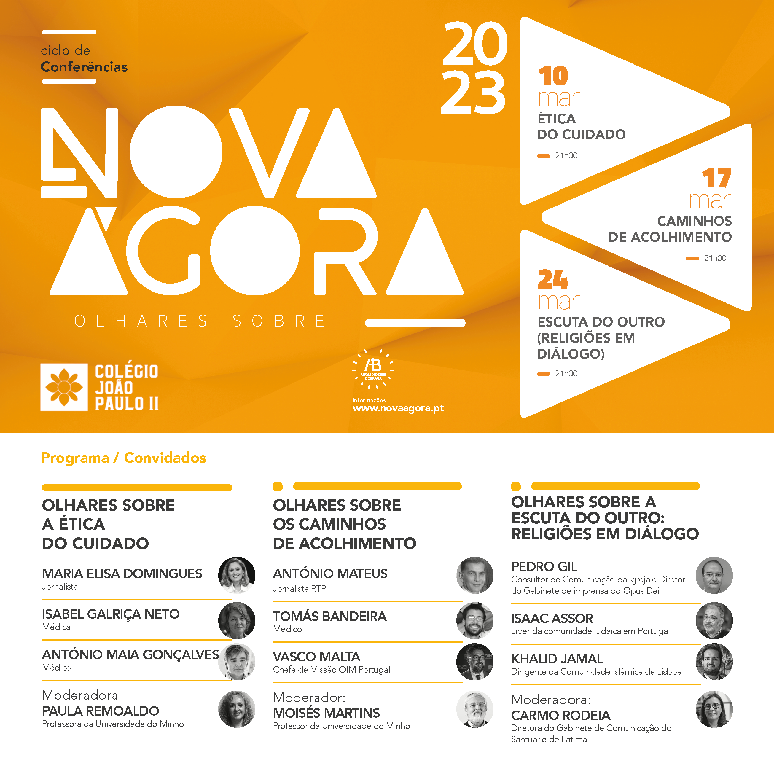 A Nova Ágora prossegue na próxima sexta-feira, dia 17, às 21h, com o tema “Caminhos de Acolhimento”, onde o jornalista da RTP, António Mateus, o médico Tomás Bandeira e Vasco Malta, chefe de Missão OIM Portugal, são os oradores convidados; a moderação es