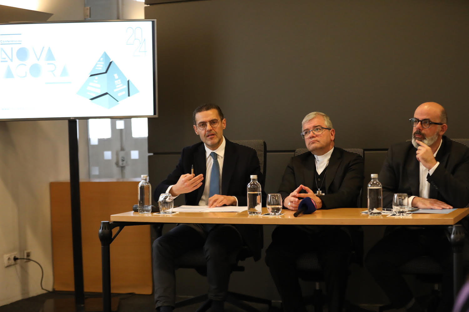 A segunda sessão do ciclo de conferências Nova Ágora 2024 foi diferente do modelo adotado até agora, na medida em que durante o serão, não houve um morador, mas dois investigadores a interagir entre si e com o público